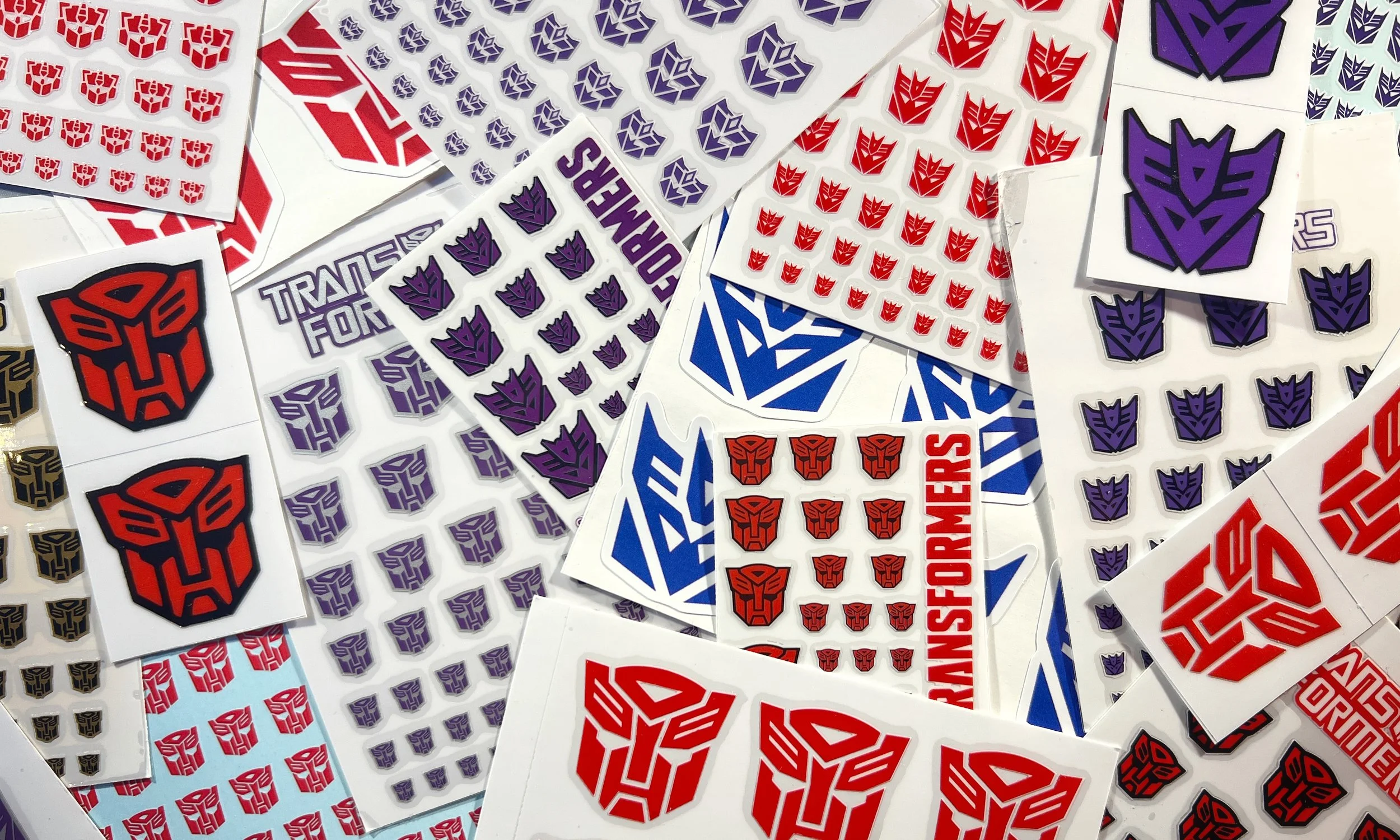 Lots of faction logo designs available, including classic G1, G2, Shattered Glass, Toon and Toy. Great for restorations, customs and third party figures.
